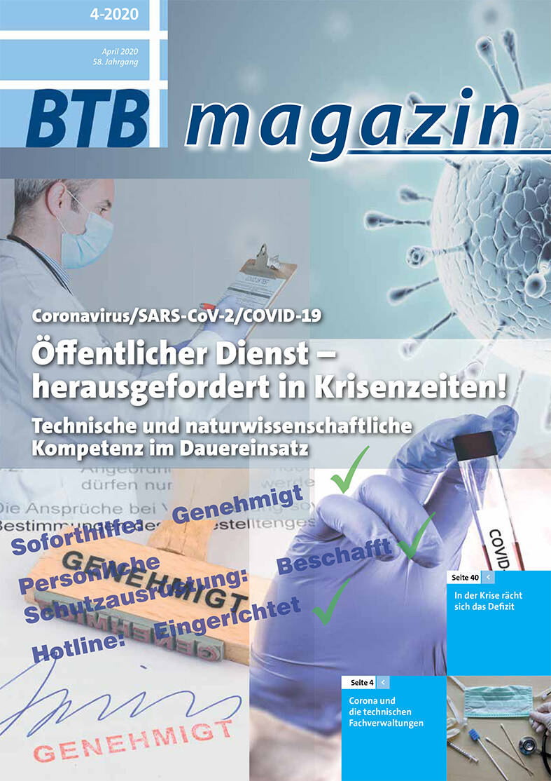 Das bundesweit erscheinende BTB Magazin informiert 10 Mal im Jahr über aktuelle Themen und Aktivitäten der Landesbünde, von neuen Entwicklungen auf Bundesebene und berichtet von Ergebnissen aus der Gremienarbeit. Zudem gibt es regelmäßig fachliche Themenschwerpunkte aus den technischen Fachverwaltungen.